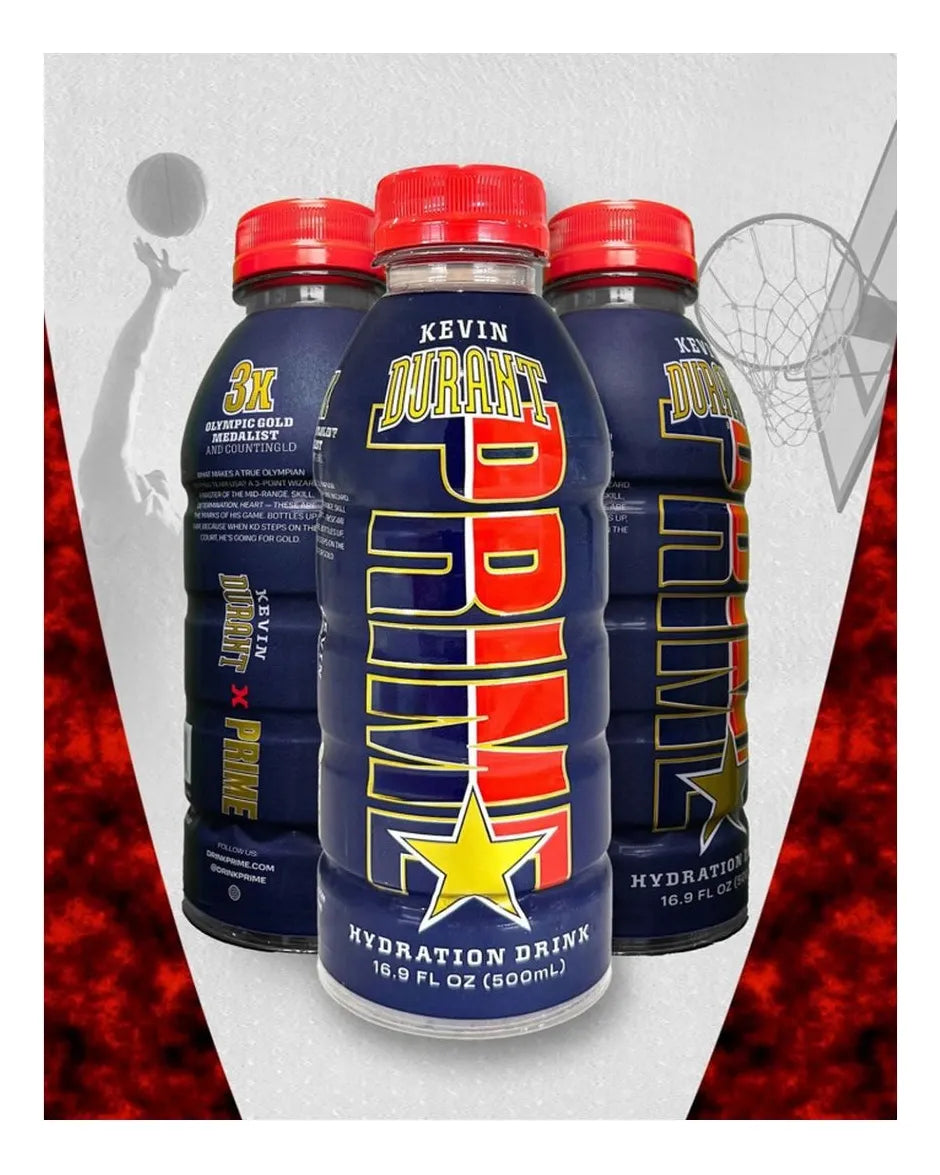 Vive la experiencia del campeón con Prime Blue Raspberry edición Kevin Durant. Esta bebida deportiva exclusiva combina una fórmula avanzada: 834 mg de electrolitos, 250 mg de BCAA, vitaminas, antioxidantes y apenas 2 g de azúcar natural, sin cafeína. Inspirada en el legado olímpico de KD – 3 medallas de oro y participante en París 2024 – el envase homenajea su trayectoria con diseño azul, detalles dorados y distintivos Team USA.