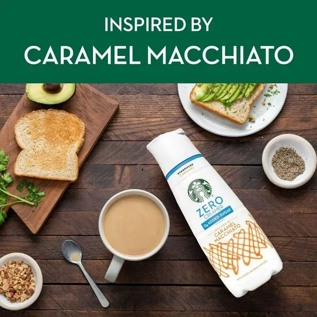 Starbucks Creamer Zero Sugar Caramel Macchiato te permite disfrutar del sabor indulgente del caramelo tostado y la cremosidad inconfundible de Starbucks, pero sin azúcar. Ideal para quienes buscan reducir su consumo calórico sin sacrificar el placer de una taza bien hecha.